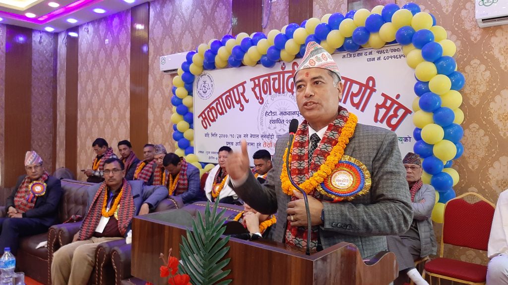 Central member of the Federation of Nepal Gold and Silver Entrepreneurs Suvin Bajracharya, Makawanpur President of the National Consumers Forum Nandaratna Sthapit, Advisor of the Makawanpur Gold and Silver Entrepreneurs Association Pawan Shakya, outgoing General Secretary of the Makawanpur Chamber of Commerce and Industry Mahendra Raut and others were present on the occasion.